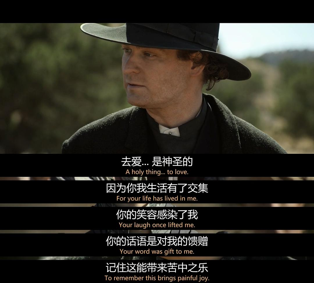 3.宗教:其实这部电视剧对于宗教的描述并不多,头尾分量会有一些,中间更多的是存在于Griffin和旁人口中。但是,宗教却是最重要的引子,Griffin随身携带Bible圣经,却因为个人经历对信条嗤之以鼻;循着圣经的指引收养年幼的Roy,在Roy“背叛”自己之后,又循着圣经的经文去追杀Roy。从这点上其实不难看出宗教对于西部精神世界极为贫乏的拓荒者的影响。另外,影片对于神秘的印第安人原始崇拜也有所表现,Bill警长治疗眼疾,Iyovi奶奶治疗Sadie孩子,都可以看出巫医的痕迹。