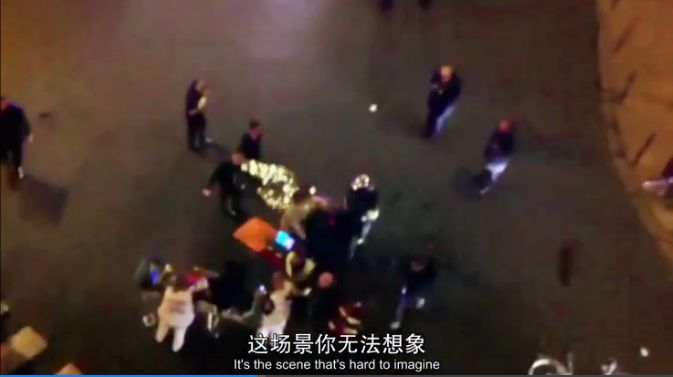 “真好笑,他们都在装死”一个矮胖的恐袭者,边笑然后边拿起枪,从上到下的扫射。