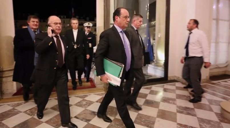 恐怖袭击发生两小时之后,法国总统奥朗德发表电视讲话,宣布与极端组织“伊斯兰国”(ISIS)“开战”。