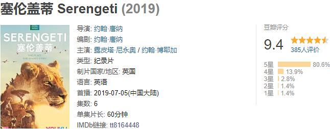 BBC品质保证,[塞伦盖蒂]获得豆瓣9.4的高分!