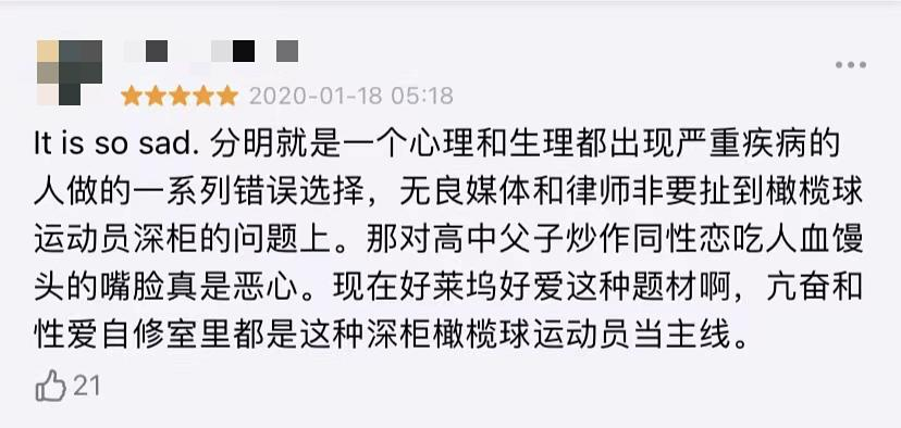 片中律师所说,这个案子的问题在于,关于所有的杀人动机分析,都极其薄弱。为了制造理由,政府想利用性取向的话题,说阿隆是未出柜的同性恋,他生活在极度仇视同性恋的体育圈,这里的冲突让他对他人充满了仇恨。