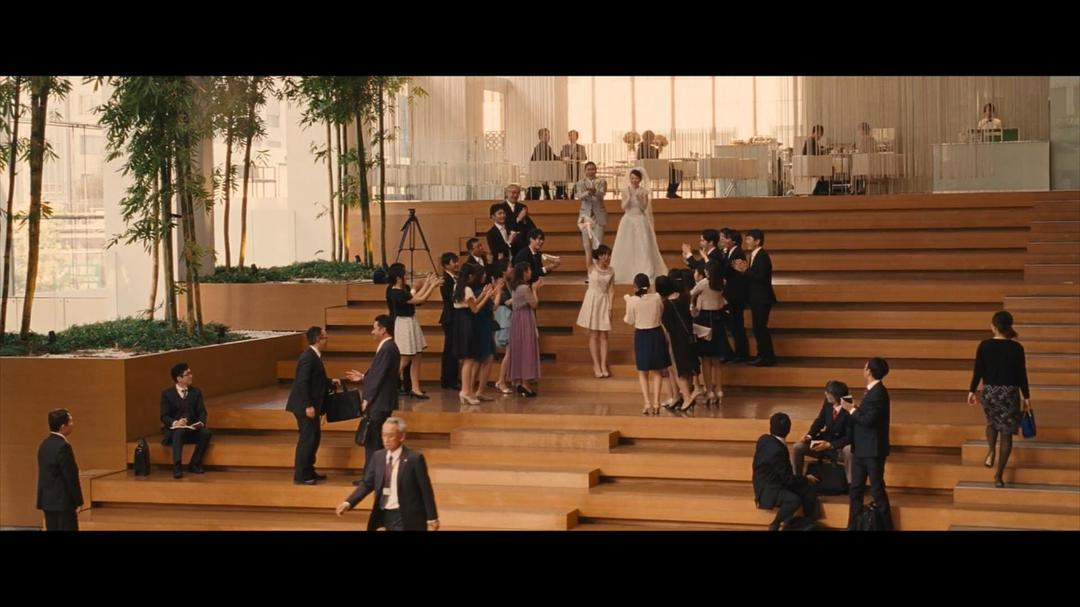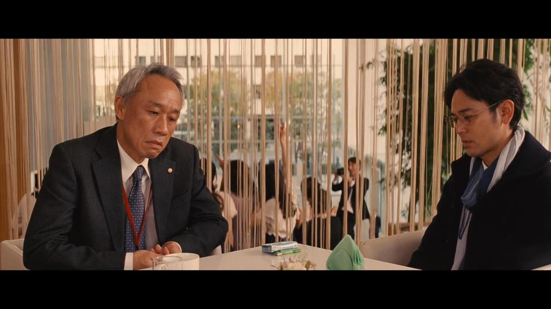 我最喜欢,同时也是觉得最厉害的便是弟弟庄太去劝说哥哥幸之助去老家找大嫂史枝的段落。他们应该是约在了哥哥工作附近的酒店见面,哥哥先是责怪弟弟插手他俩夫妇的问题,然后哥哥一路走在前面,上楼的过程里,后景的群演发生了变化。
