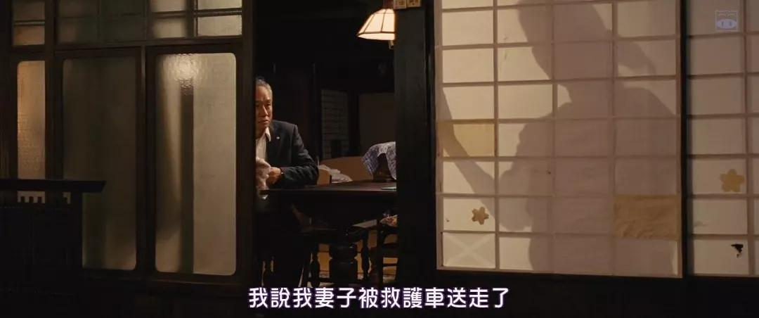 固定机位,利用隔门将场景简洁化了,并将史枝的影子投在隔门上。n