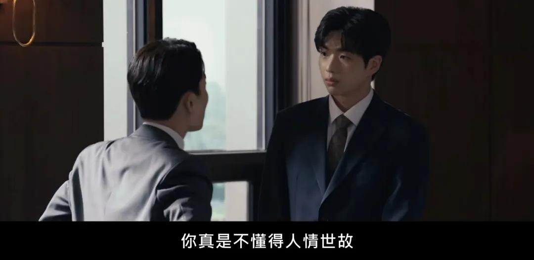 喜欢安导风格的会理解剧中小细节的趣味,比如下图,山人建设原来的代表是河专务派系,自大的发言被对方公司的人记小本本:“眼力见X”,尹洙诺在旁边直咬后槽牙~