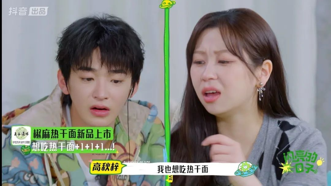 今年大千影业的老朋友五谷道场赞助了《闪亮的日子》第五季,不仅赵林林和绿鱼亲自下场帮品牌方直播带货,原本不包含植入到内容中的权益,但节目录制过程艺人们会很自然地cue到品牌,有时候看着小片,就提出要泡一碗五谷道场热干面现场大快朵颐。“这些并不在给艺人的合同里,按理来说要给到费用,但大家就是想吃,也不介意给品牌打广告。”