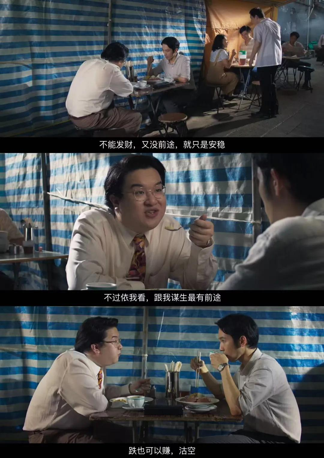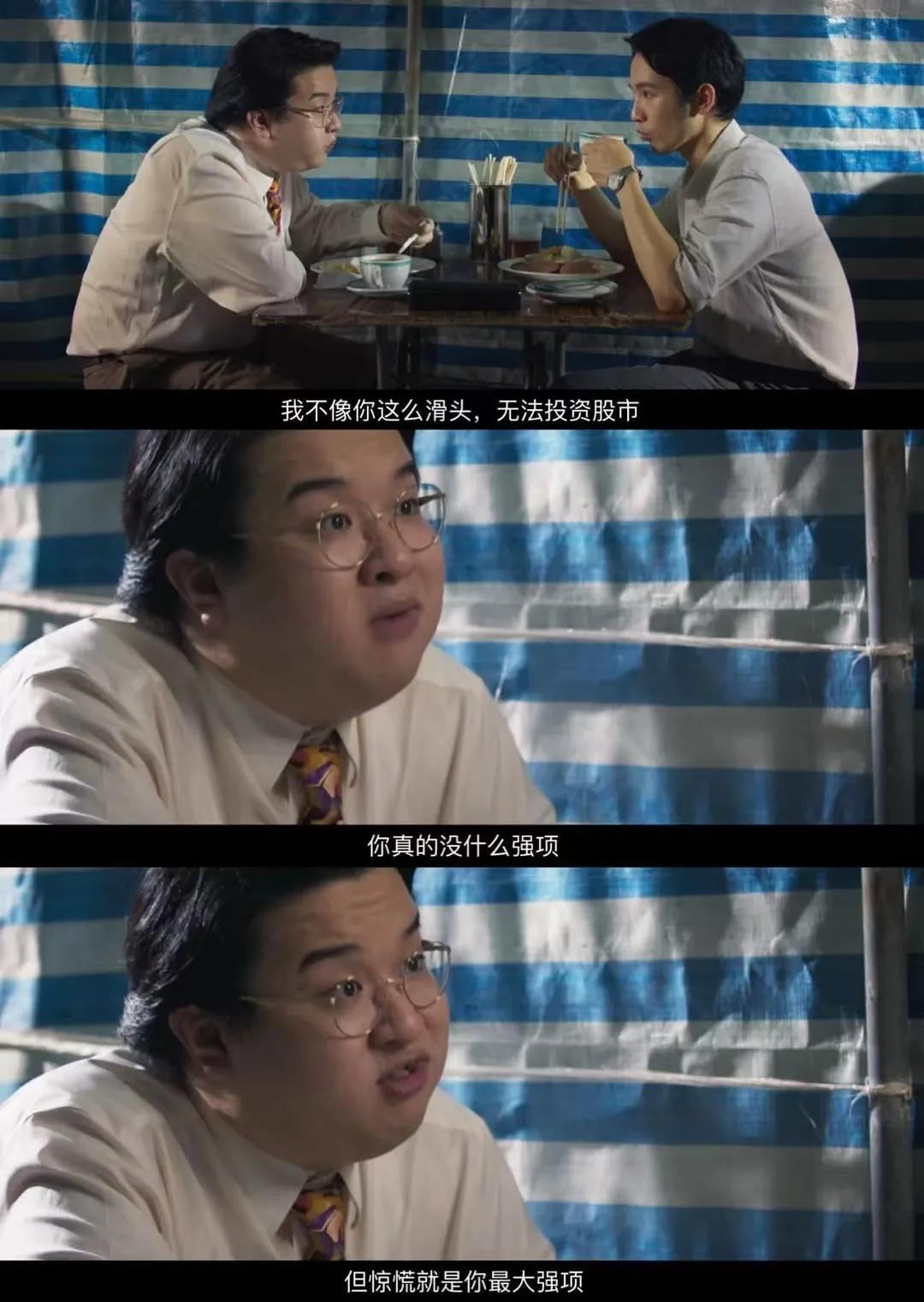 黑社会大佬线,胖哥们靠着阿信赚大钱,阿信开口,就算事儿有难处也照办,全程姿态畏缩——当你的死党成了你的老板,多半会成为这种相处模式。