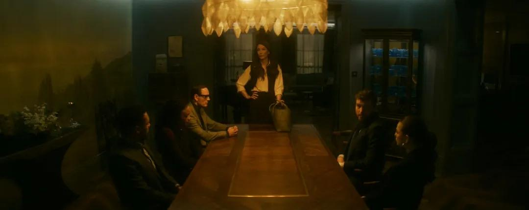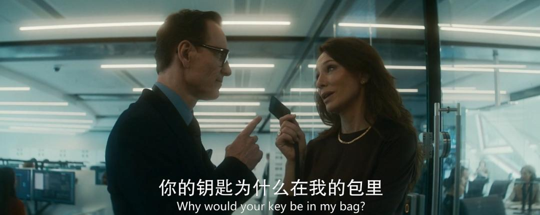 - 男主假装丢了工牌去找女主的时候,会议室里第一次展示了女主的上司。老邦德一个切换玻璃的动作就展示了他宣誓主权的意味