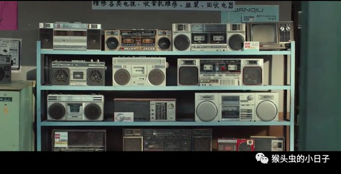 小卖部里那一排电器,除了第三排中间的是“话匣子收音机”右上角的电视机以外全是录音机。双卡的(也就是可以同时放两盘磁带的 )可以转录,价格最贵,一盘磁带转录好多自制的盗版磁带发给关系好的人,是特别值得你周围同学羡慕和尊敬的事儿!