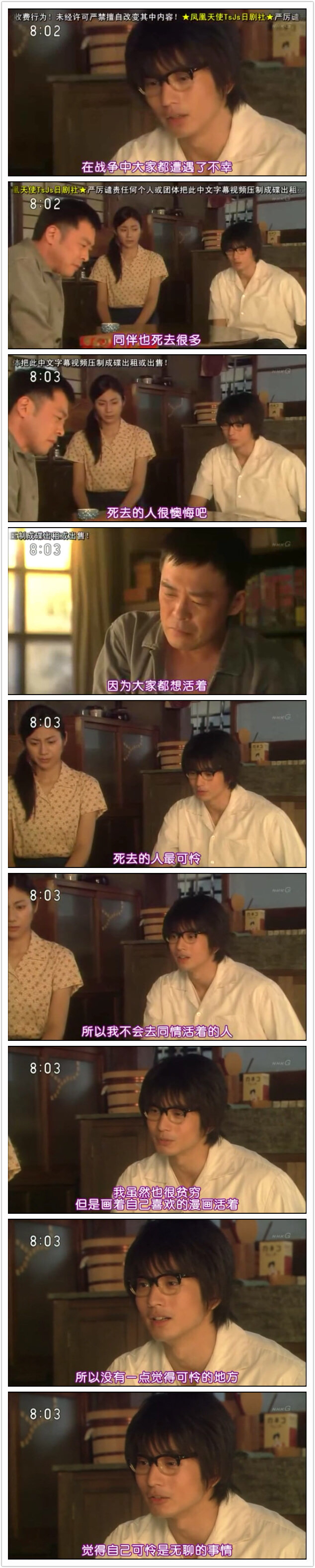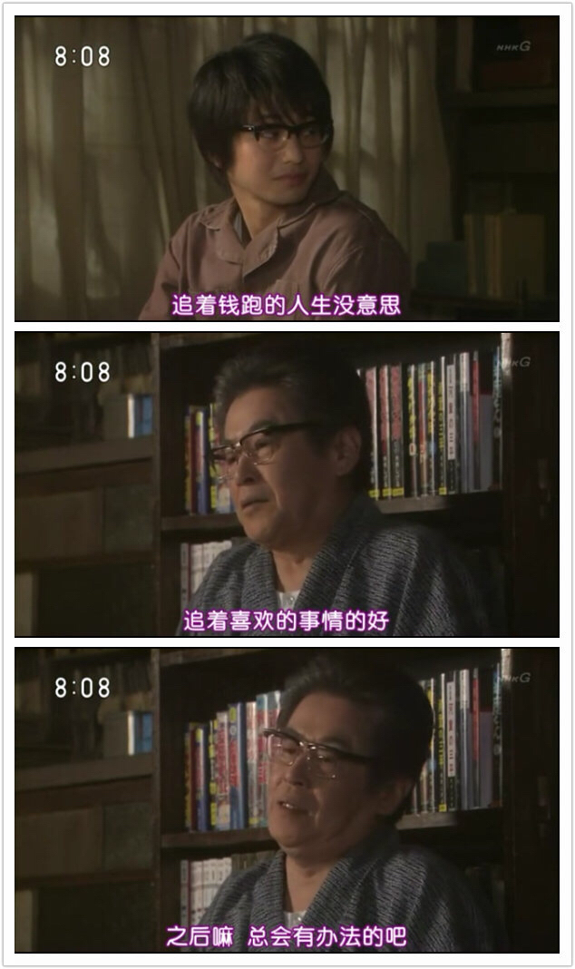 顺道提一嘴题外话,决心看这部100多集的连续剧得归结于日本导师和学长的一段对话。学长最近结婚,妻子辞掉冈山8年的工作,离乡背井来到东京,小两口一起打拼。学长表示压力很大。老师说,你看《ゲゲゲの女房》,学者都是这样过来的,苦着苦着,有朝一日突然就前途明朗起来了。
