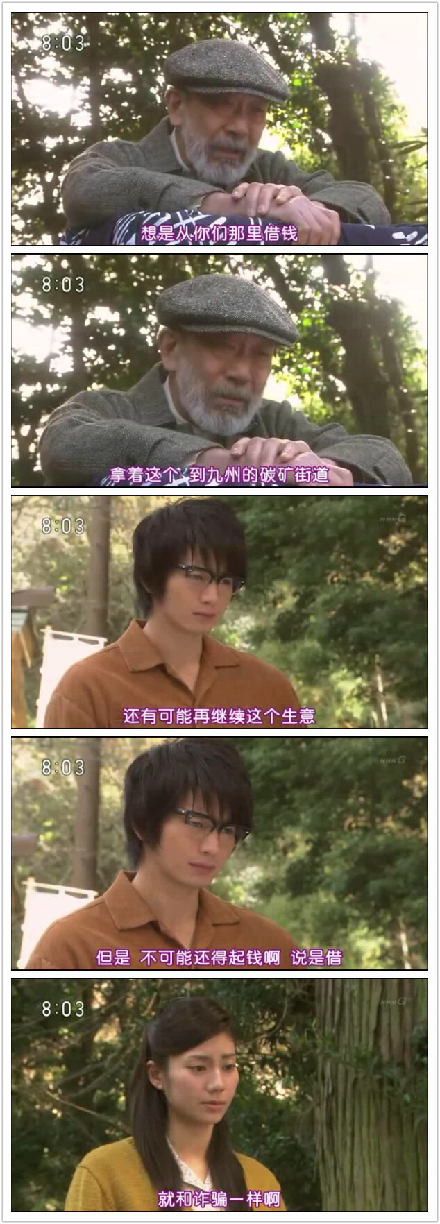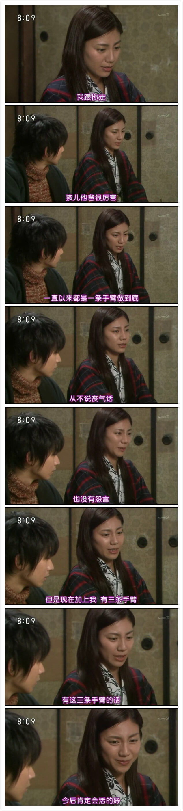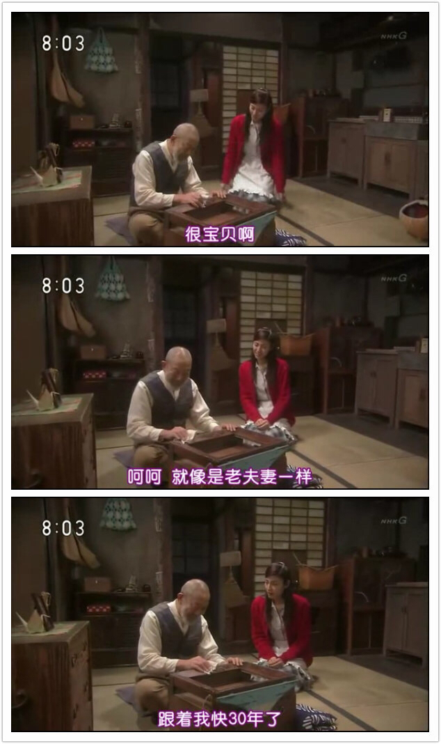 这部片子叙事速度很慢,看到接近20集的时候,男主角才正式登场。然而这之前的布枝美的成长物语,却给我很深的感悟。布枝美到28岁,还没有走出过自己的家乡。看的时候,我一直在思考什么叫做“成长”,什么叫做“充实”、“快乐”。现代人的眼中,不读万里书不行万里路,永远有如一只井底之蛙,可怜而渺小。但28岁之前的布枝美,没有正经谈过恋爱、没有结婚、没有踏出过小城半步,除给家里的店铺帮忙外没有工作经验,但这样的布枝美比起现在的大多数人,无疑是要更“充实而快乐”的。