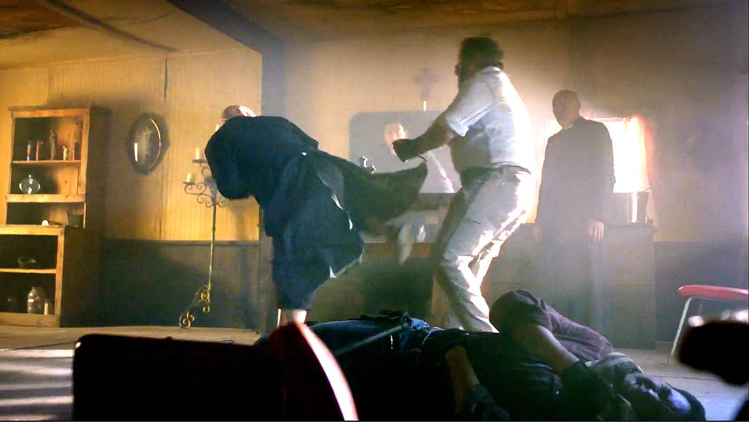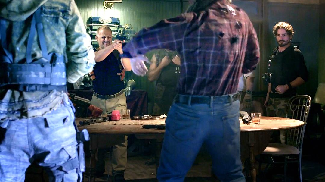 可能会有人问,最后阶段maxx明明在外头大杀特杀,屋里的佣兵怎么不一起出动干掉他。这点当然是编剧安排,但是硬要解释,只能说拉克雷(就是佣兵老大)悬赏十万刺激了贪钱的佣兵,各个都想着让上一个人先打,精疲力尽了我再出去收十万的人头,结果被各个击破。