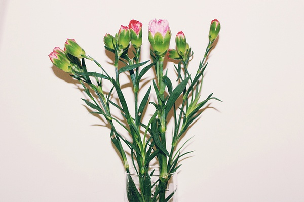 前阵子,大概有一周或者十天了,我在逛街的时候买了几株便宜的康乃馨花苞,带回宿舍,插进一个高高的玻璃啤酒杯里。现在,花还没开好就快要死了。软弱无力。生活仍然要继续。