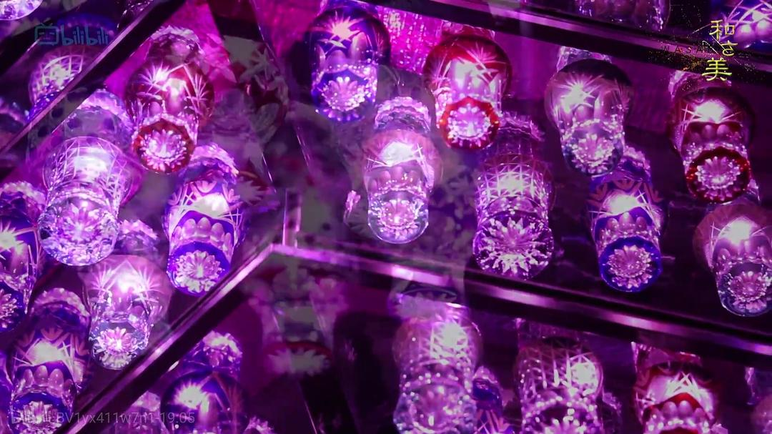上千个江户切子构成的水晶吊灯。这是属于霓虹国独有的色彩。