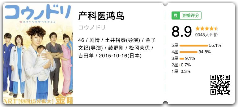 日剧都是讲社会黑暗吗,于是我很想向她安利这部《产科医鸿鸟》,也是最近我拼命向别人安利的剧目之一。一部每集虽然有泪点,却不狗血,而每次听它的配乐,都有种被温柔包裹着的感觉,觉得自己好像被治愈了一样。