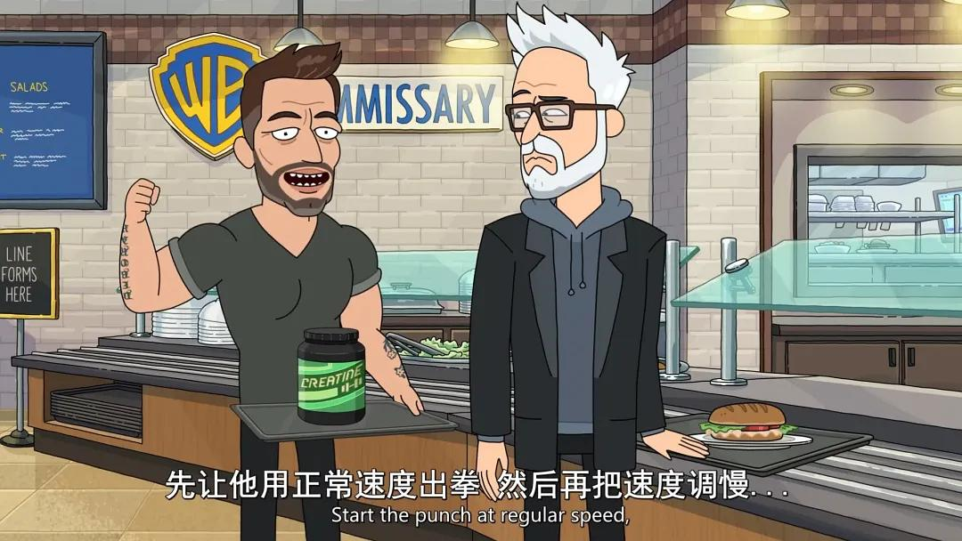 滚导客串《瑞克和莫蒂》第八季时,也曾在华纳兄弟片场的屋顶上中弹,以与超人相同的姿势倒在血泊中。