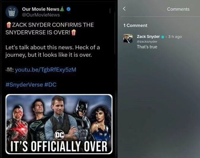 在好莱坞报道发文以后,施耐德宣布DCEU宇宙结束。