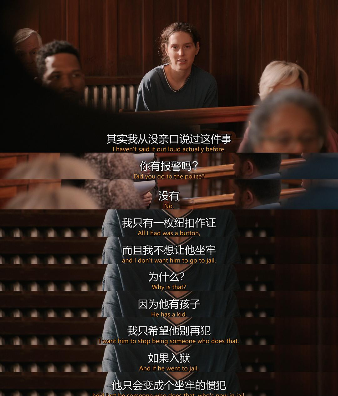 有一句台词她说:“我不希望他去坐牢,因为那样他只是一个做了那件事然后去坐牢的人。我希望他不再是那种会做那件事的人。” 我真心相信这一点。