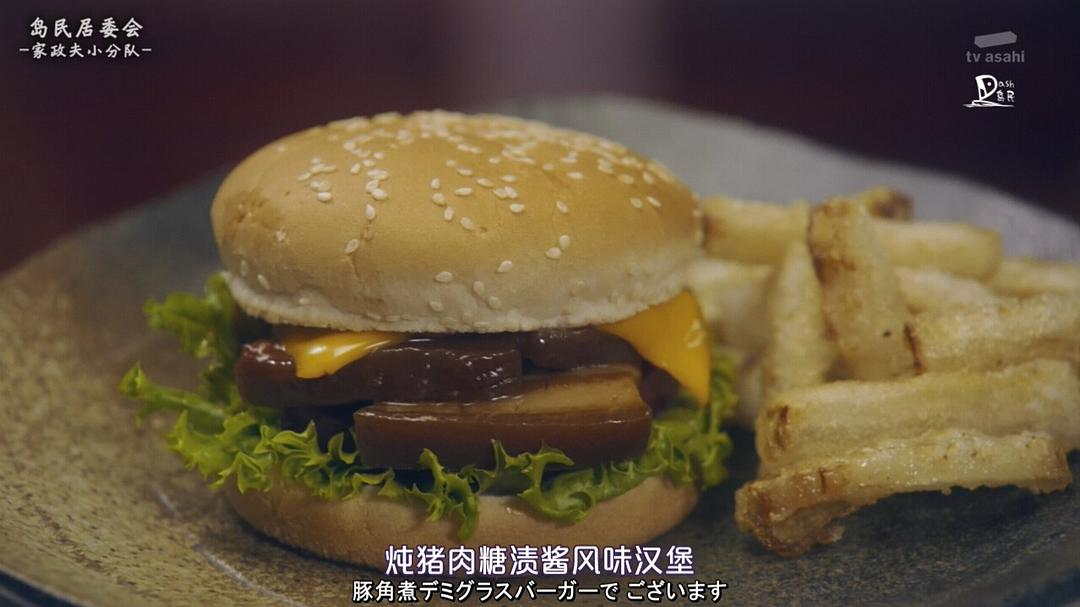 D 糖渍酱猪肉汉堡+炸萝卜条套餐。