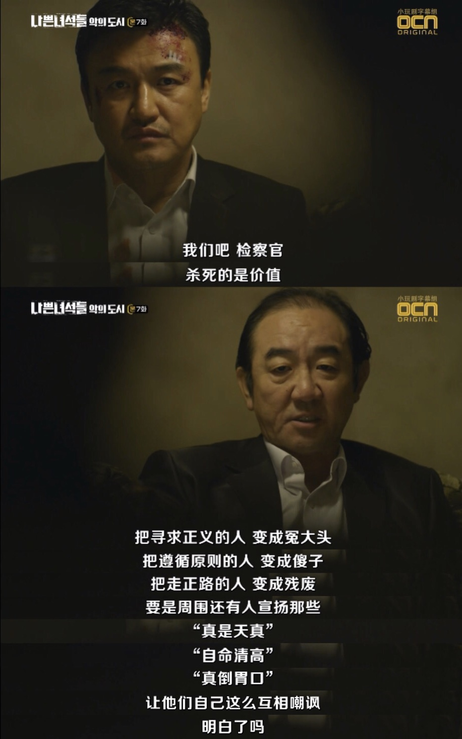 乍一看,这满满的温情与教条,哪像是OCN哪像是坏家伙们。然而细品之下,就会发现编剧这次的老到与残忍——正是因为这群没有1那么坏的人,却面临着比1更深更复杂的恶,才更能凸显出这段故事的悲壮。