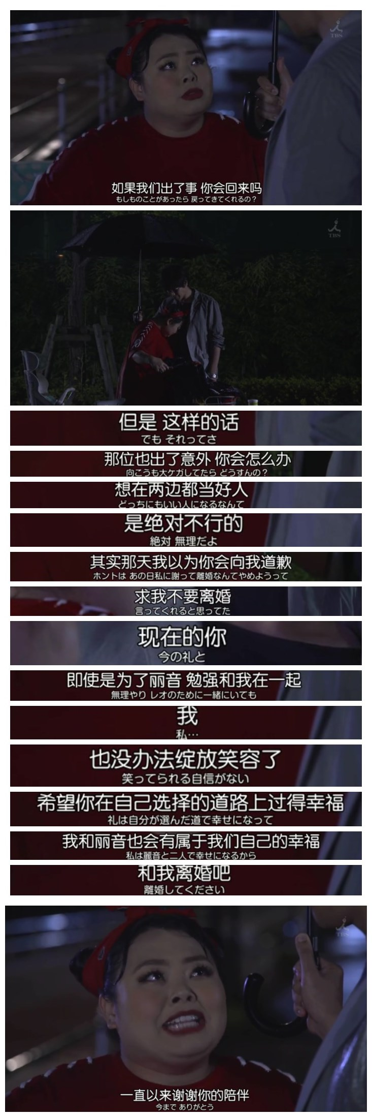 而环奈太太这边,离婚毕竟不是发烧感冒睡一觉就好,环奈太太也不可避免地将情绪带到了工作上,但是她马上跟同事道歉,而且就算自己已经打不起精神了,去幼儿园接孩子放学之前还是会告诉自己,不能把不好的情绪带给孩子。(我只能说我们国产的孩子实在很早熟,而且还有那么多人帮着看!包括闺蜜男朋友~)爸爸不能来参加亲子运动会了,200斤的妈妈自己上!孩子摔伤了,拜托医院的人照看,自己冒雨去推车。前夫赶到,她也心软,但是她说,我不希望找一个内心里我不是第一的丈夫勉强共度一生。所以请跟我离婚,感谢你的照顾,希望你能幸福。这种燃得你觉得三观超正的我不知道是不是真实的日本人,但每次都会被这样的剧情惊到!对比哭天抢地,这种离婚真的让人觉得她起码赢得了尊重!今下来并不知道剧情要怎么走向,因为一个星期才更一集,但是总不会是环奈太太减肥整容变美女(韩剧《美女的诞生》是这么演的)也不会像《前半生》出现什么闺蜜的男朋友之类的。因为环奈太太虽然是网红演的,虽然她一如既往画着浓妆梳着两个小辫子,但是她对小朋友的耐心就是很像一个太太,希望她能带给人们正能量吧!