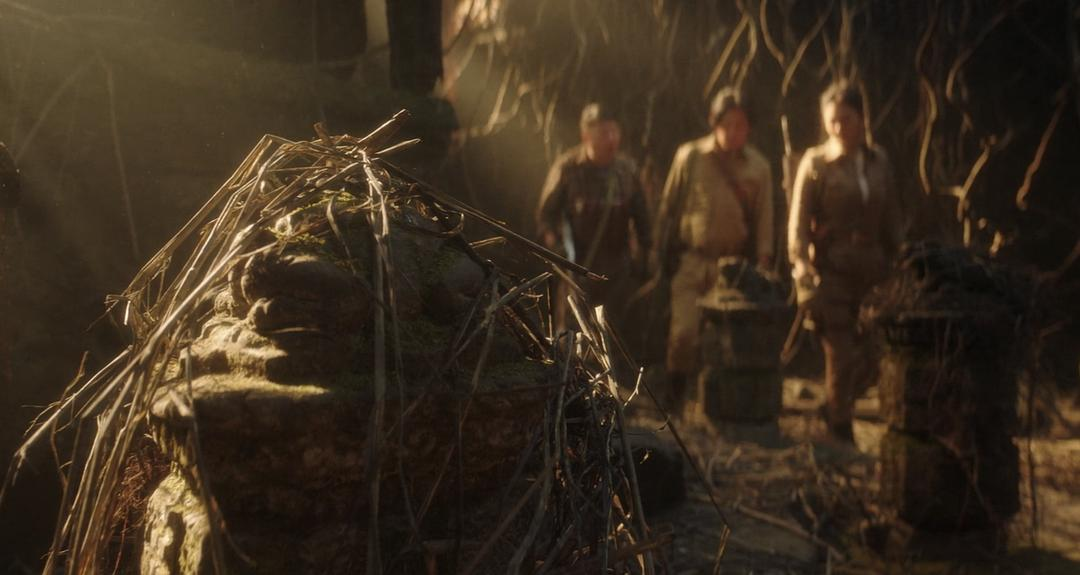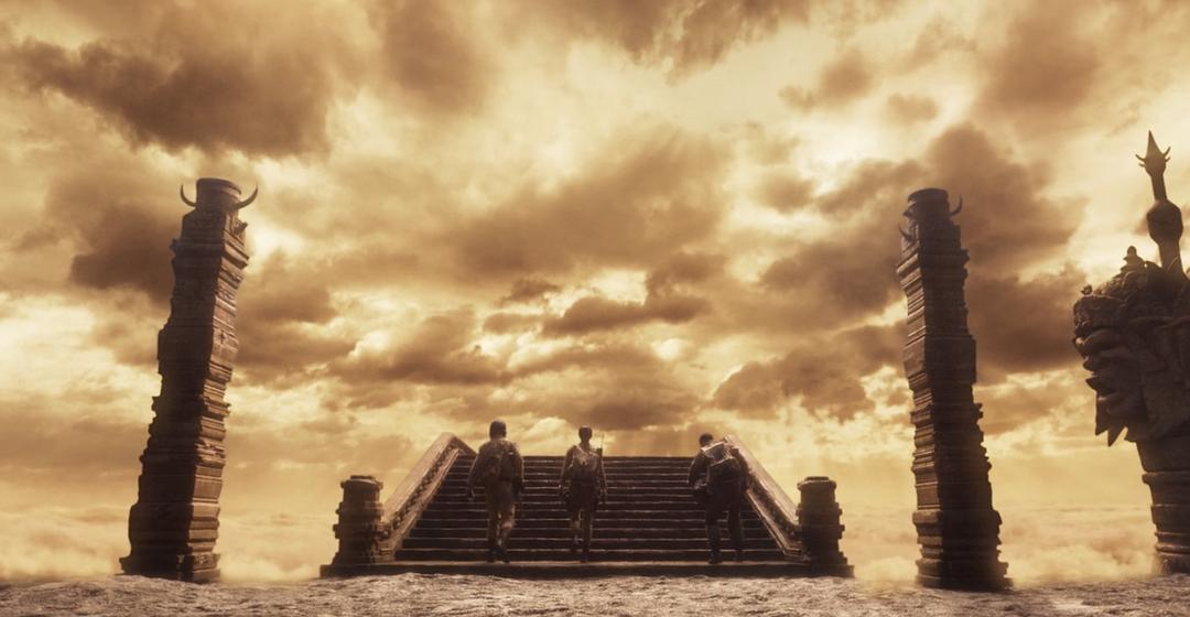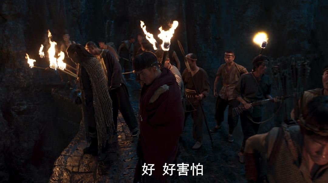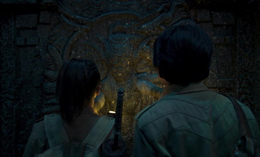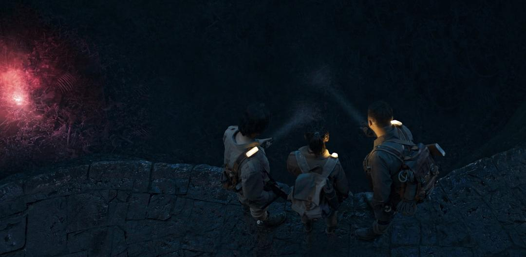 山神庙的剧情里更是把凶险诡谲的献王墓一行当成了大玩段子的鬼吹灯之欢乐喜剧人特别篇,三人躲在背后装神弄鬼最后暴露那段属实是低幼又无趣,三个成年人为了找雮尘珠解除诅咒带着重重谜团进入到了诡异的虫谷,竟然跟一帮当地村民在山神庙玩起了躲猫猫,这种已经达到出戏级别的玩笑在正片里究竟还有多少?村民世代守护的庙宇为何又拿炸药炸掉?剧情逻辑和人物动机巨大的漏洞让这条支线显得愈发荒唐可笑。