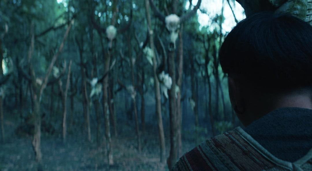 1.开头客车在山路上碾碎的人蛹,司机还解释经常会在这段路碾到类似的东西,为后续下墓进行了氛围铺垫。