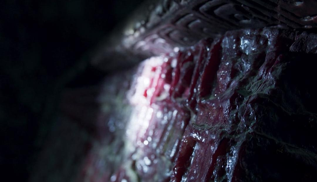 24.为防止化石树断裂,铁三角来到边上的石台,发现是人工修筑,是记载了祭祀仪式的祭台,记录了山神的样子,古人用23条的蟾蜍祭祀山神的仪式,山神躲在散发着黑气的洞穴中,蟾蜍被绑在16条的竹竿上靠近洞口,然后被吸干。山神庙中的山神、葫芦、蛤蟆在此串联起来,前后呼应。