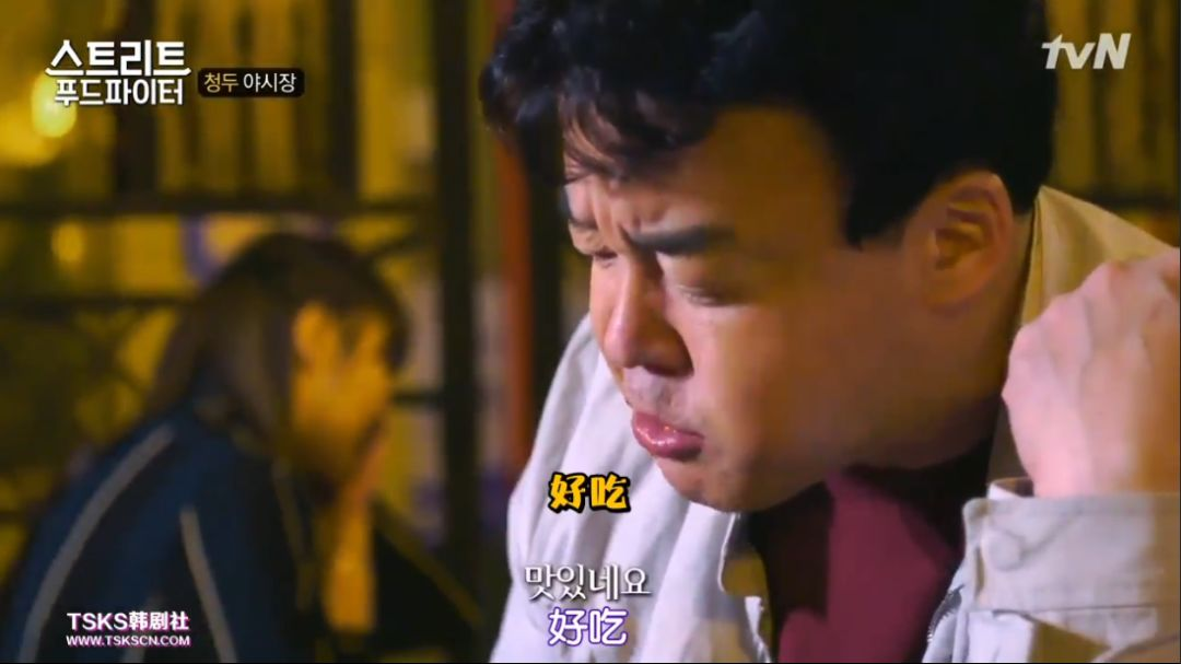 其实,除了以上提到的内容,我最喜欢这个节目的一点还是:无论多么普通的食物,在白钟元的描述下和《街头美食斗士》的镜头下都会变得珍贵而诱人。比如,他会点出“怎么会想到先把辣椒调味料洒在生肉上烧烤”的奇思妙想: