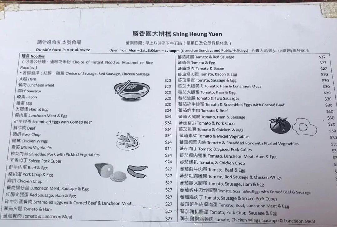 1、胜香园:番茄牛肉伊面(招牌),奶油脆脆(字幕组翻译为:西多士,但是香港多称之为:奶油猪仔包),冻鸳鸯。