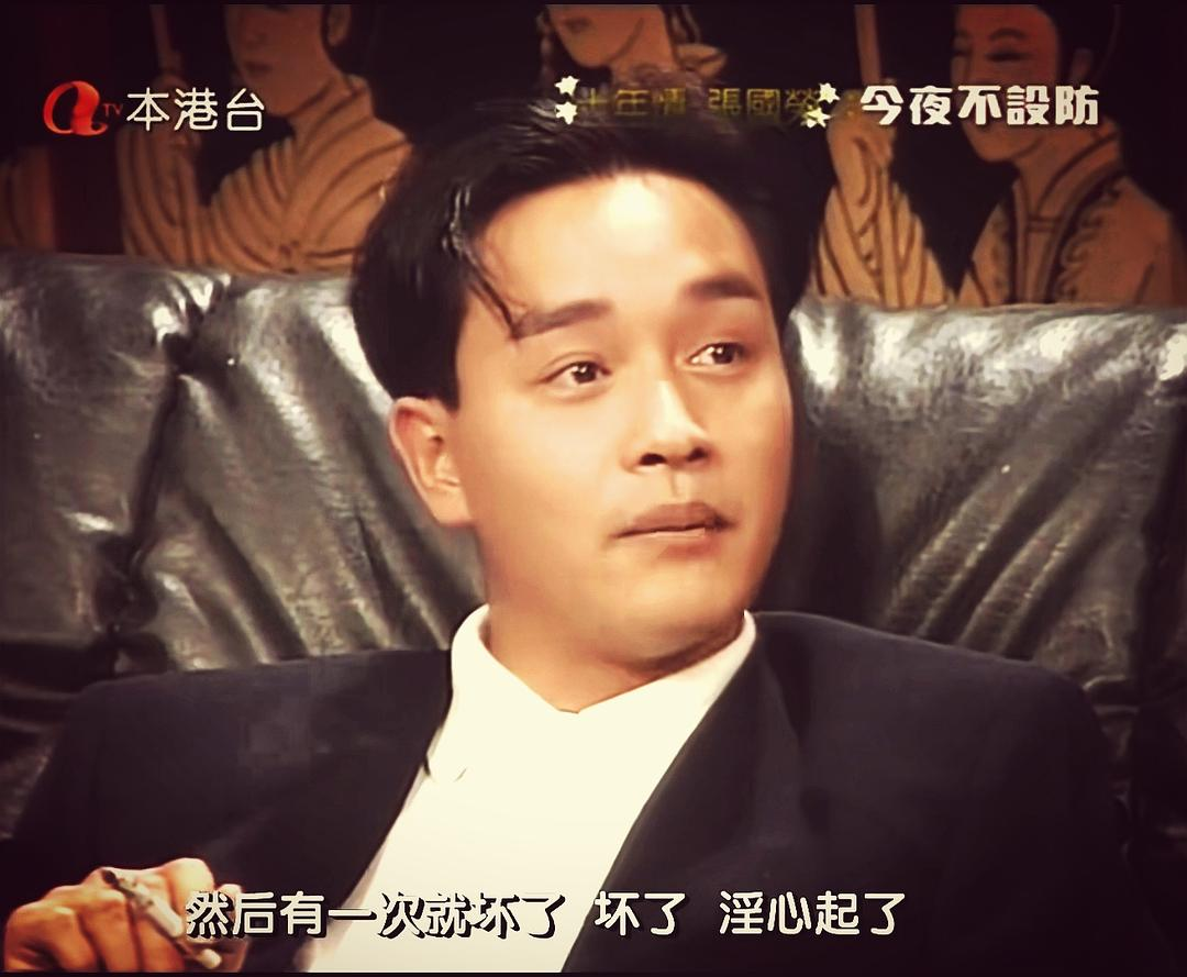 彼时33岁意气风发的Leslie正处于唯一对家谭咏麟封麦,他独霸乐坛的首个全盛期(几个月后就退出乐坛,开启大家熟知的影坛盛世)访谈全程他都半醉微醺,瘫在沙发里手指上掐着根烟,嘻嘻哈哈骂骂咧咧,口无遮拦,所有输出的观点/爆料皆言之有物。