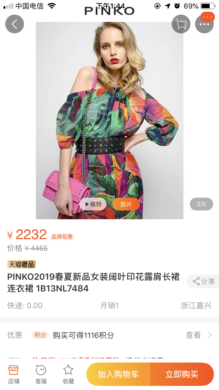 pinko印花连衣裙 下面是在PINKO天喵(嘻嘻)搜到的价格: