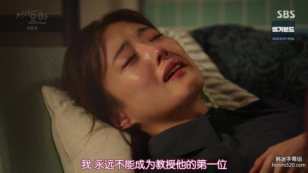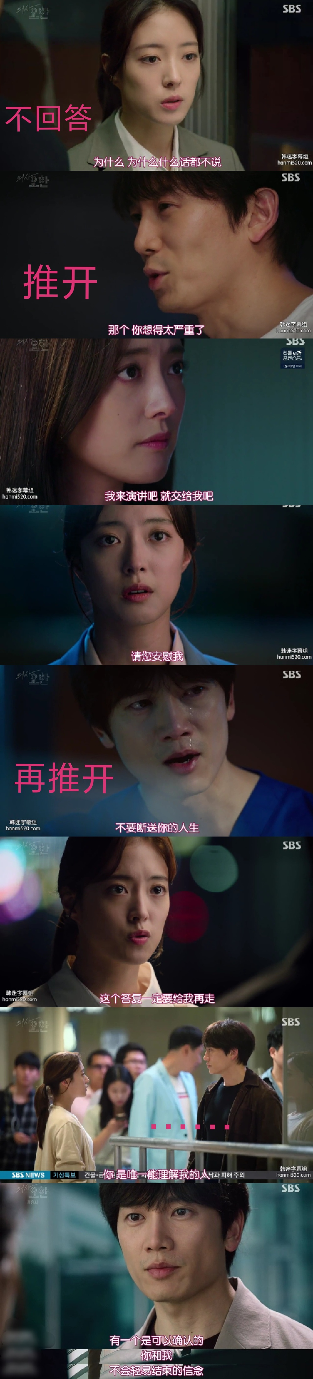 在事情平定之后,两人在天台见面,姜诗英知道了车教授的病情很严重后,说出了:“请您安慰我”的话,这又是一条神仙表白——比起你面对自己的死亡,我面对喜欢的人的死亡危机是更加痛苦的,爱有多深就有多痛。