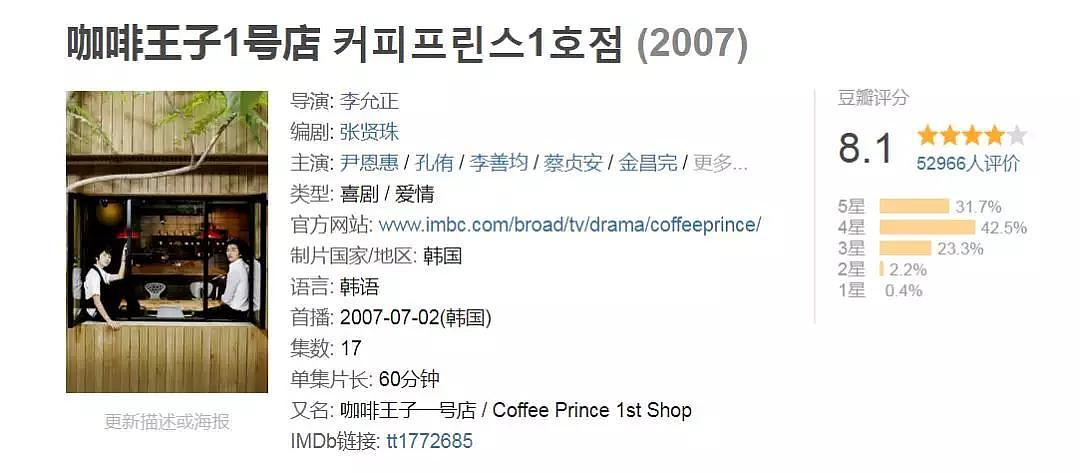 导演单独的作品,还有我们非常熟悉的古早神作,《咖啡王子一号店》。 从某方面来说,也确实是实力和质量的保障。