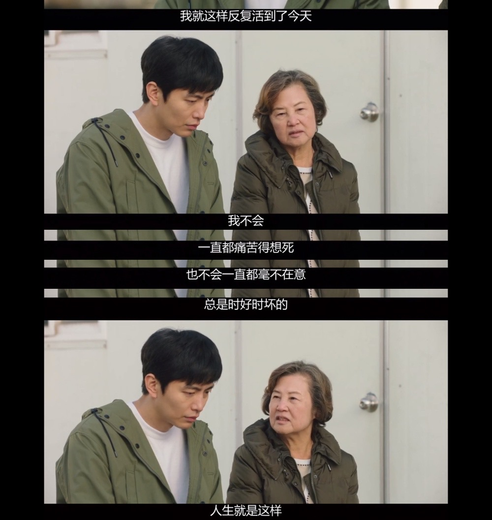 这也是为什么他愿意帮金瑞希找回她的丈夫的原因,他用自己的持续至今的伤痛,也来安慰现在正因此受到折磨的金瑞希(算是一种战友情嘛,哈哈哈)因为他们不过都是那十之八九,罢了。