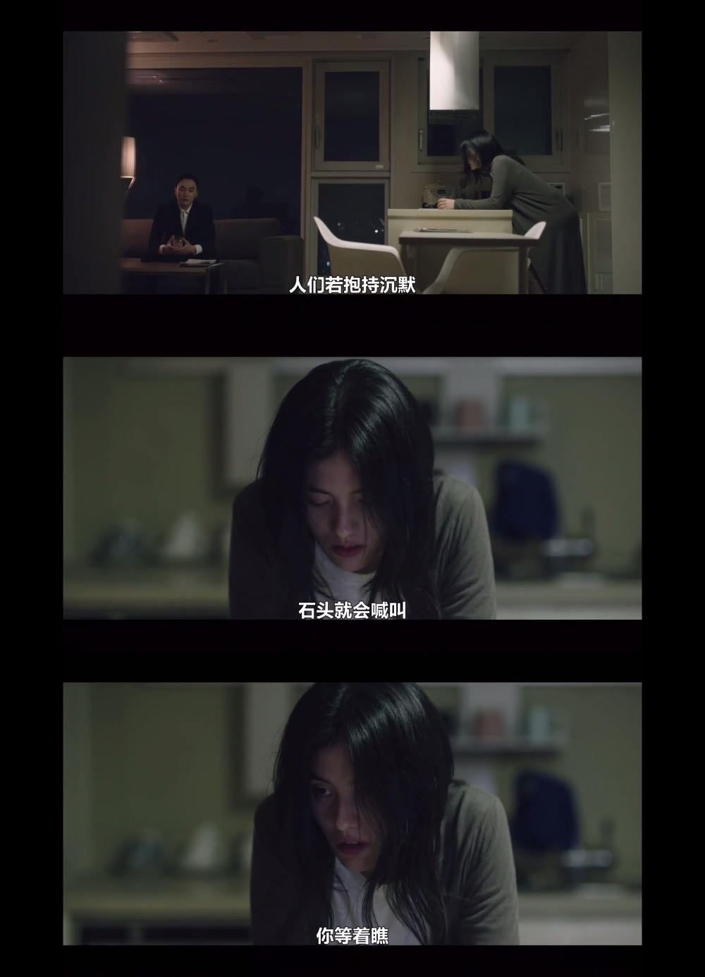 【女记者】n女记者的死,是整部剧的开端,她死前的几句话很有意思。모두가 침묵할 때, 그들이 소리치기 시작했다.n为什么是【石头】,石头坚硬且遍地都是,所以不要以为除了我就不会再有人站出来了,我背后还有很多「喊叫着的石头」,所以她一点儿也不怕死,我猜这就是,为什么她被推下去的前一刻是笑着的吧?