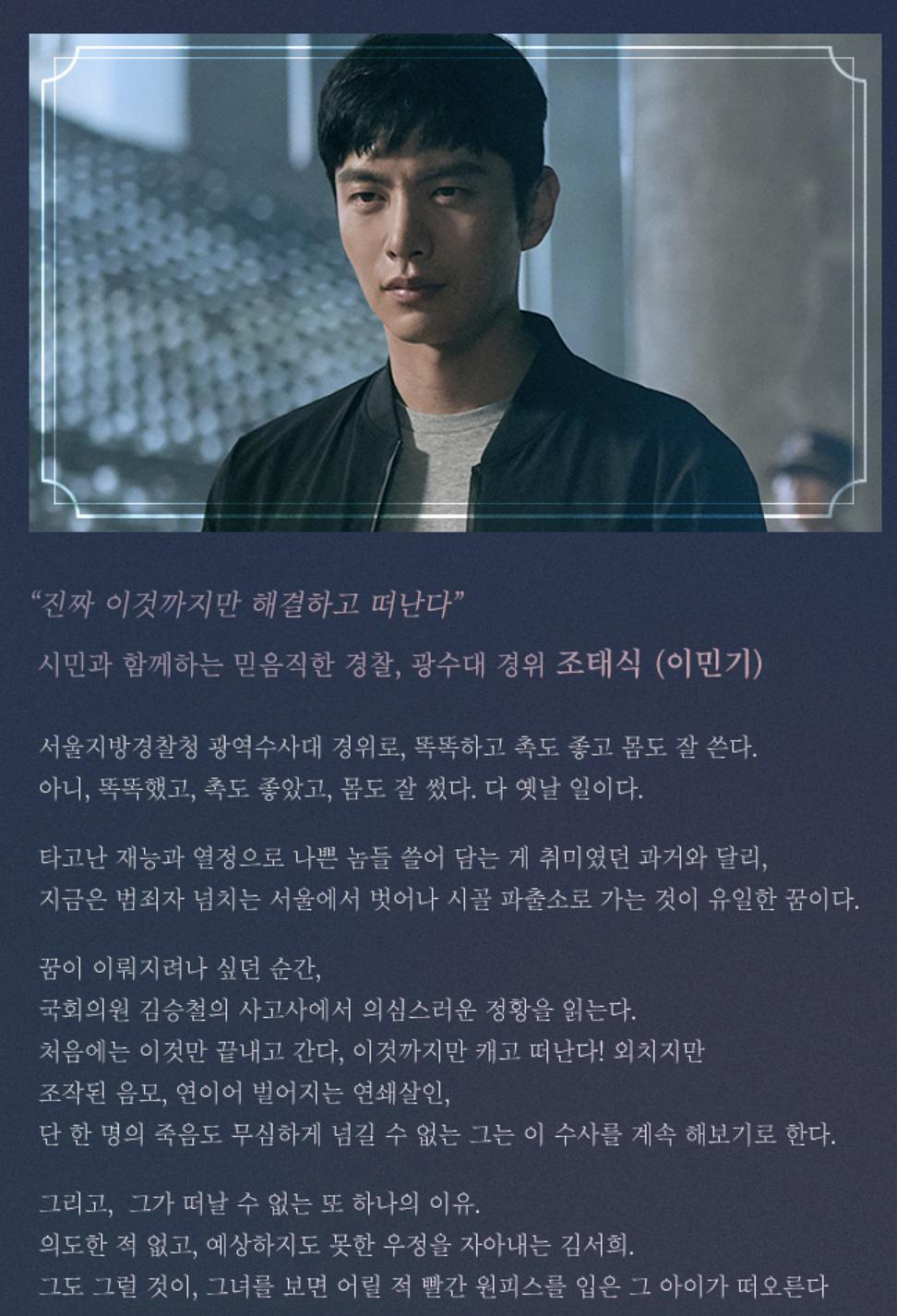 至于李民基,这次他要饰演的曹警官,是一位性格强势的警察。