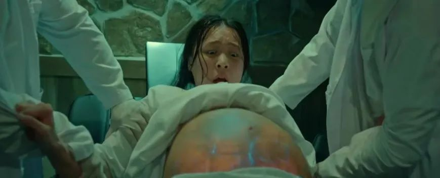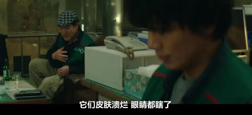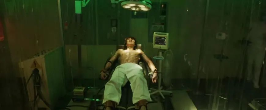 为了更诡异的效果,导演使用了蓝绿色的光。