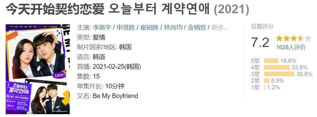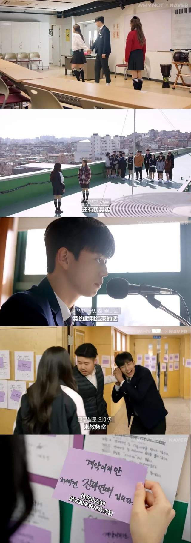“임신을 다해 오늘을 살아간다면, 그것만으로도 충분히 의미 있지 않을까요?”n“如果带着真心去度过今天,就那一点就充分有意义了吧?”n⭐️剧情梗概:校花女神吴智娜(李施宇 이시우 饰)为摆脱前男友具亨卓(林尚均 임성균 饰)的纠缠,和校内毫无名声但暗恋女神许久的李胜民(申贤胜 신현증 饰)开始了契约恋爱……n小甜饼校园网剧,一集十多分钟,一共十五集n用来轻松一下下饭看的很好的选择????n可爱奶狗X校园女神n这是第二次看男女主合作了哈哈哈,第一次是《流星》,这部剧是他们二搭了。n虽然是网剧而且是契约恋爱的老梗(韩剧好喜欢契约恋爱哈哈哈哈),但是主角们的演技都很在线(男三最开始有点用力过猛但是后面还蛮可爱的)n真的超喜欢男二555,全程都在看男二,长得帅腿又长有眼又有嘴(戴棒球帽真是帅),剧里鉴????第一人,角色脑子三观都很在,演员演技也超棒,超棒的狼狗配置,巨有安全感????????????n男主小奶狗,很可爱就是有点弱,但是真的很可爱而且很爱女主,爱真的可以胜过一切n女主好强好美好喜欢,人设超级好完全挑不出毛病,就是一个很刚很强又对人真诚的大美女!!就是最开始看有点跳戏《流星》脑子里循环播放“wuli尤娜呀~”n女二可怜之人必有可恨之处,普通人注定没法胜过老天爷赏饭吃的天才,而且这个天才还是自己的好友…于是就开始黑化花式作死了n但是好喜欢女二的颜,下垂狗狗眼短下巴鹅蛋脸,而且演员演技全程在线,希望下次能拿个讨喜一点的剧本哈哈哈。n总结:虽然套路经典剧情也没啥大的亮点但是演员颜值演技都在线的蛮好看的短剧!!