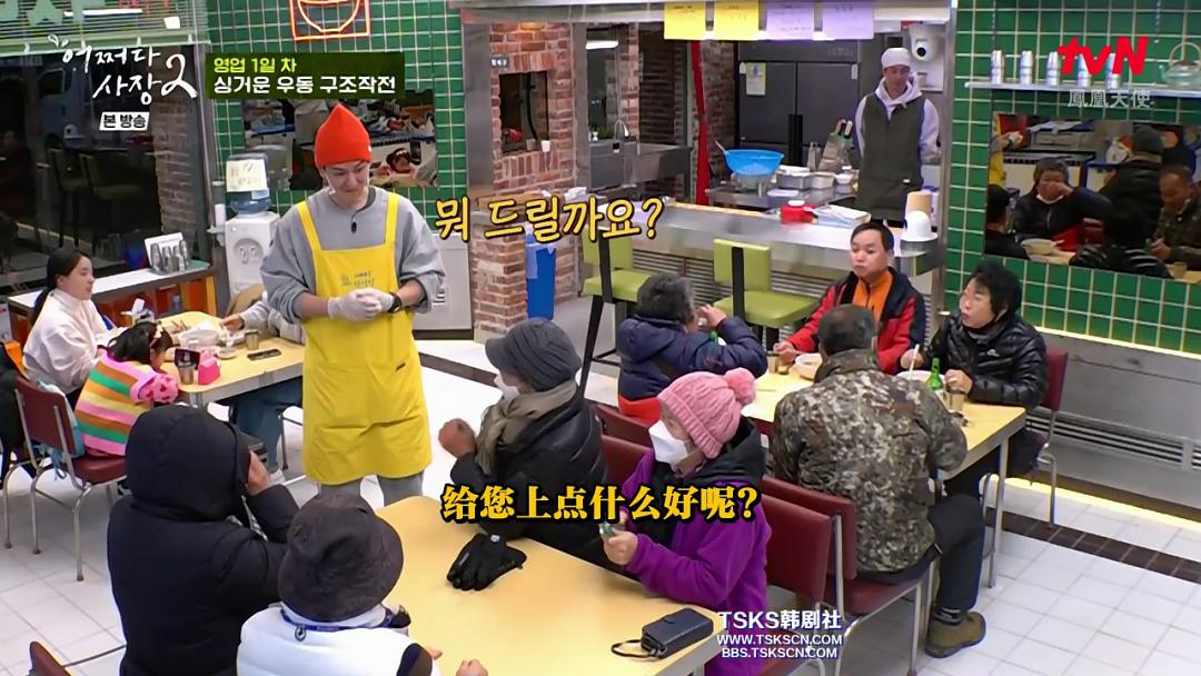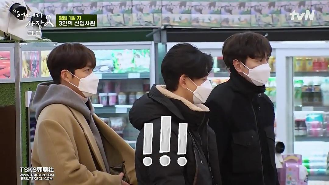 幸好,营业第一天就有三个“188”帅哥前来帮忙——李光洙、金宇彬和林周焕。