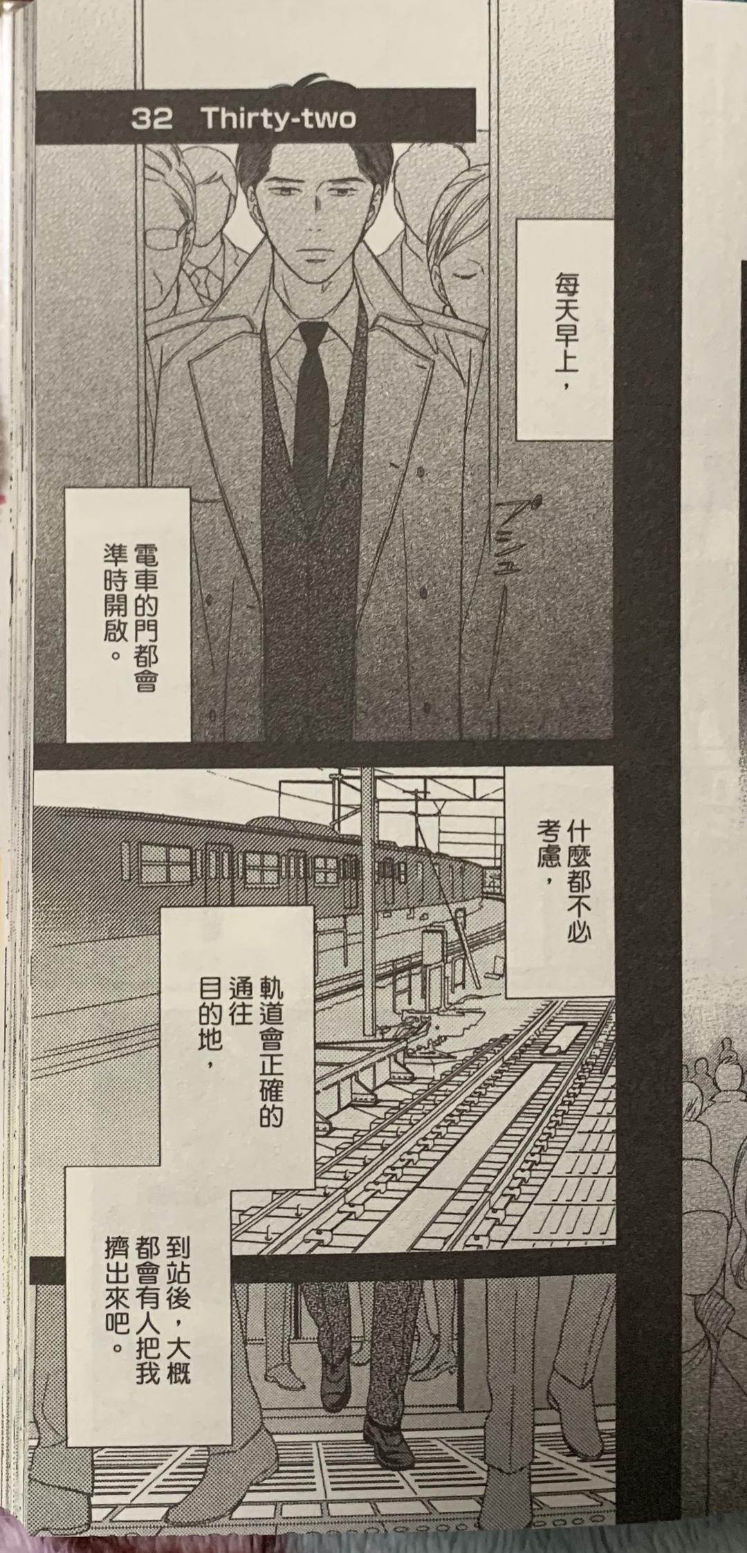 1. 两人走进电车站,伊东突然把夕希拉到一边,然后壁咚他,吻他。电视剧这里的调度和节奏真的太奇怪和突兀了。我看的时候还以为是:伊东发现有人在跟踪他们,于是赶紧拉着夕希躲到一边;或是伊东有什么重要的事情,紧急地要和夕希说...没想到是去接吻。如果在接吻镜头前加入伊东几个眼神的特写,铺垫他的欲望,也许就不会那么突兀了。实际上漫画中也没有插入特写,可是我并不感到突兀,一是因为这本漫画本身分镜之间就跳跃性非常大,二是漫画上一页已有很多伊东内心独白,脑中幻想的铺垫。