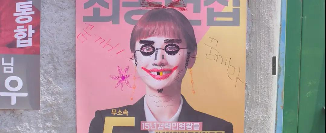 海报贴在世拉爸爸工作的小学旁。其他候选人的海报都只是被简单的涂鸦了,唯独世拉被画的面目全非脸都认不出来。我怀疑,这很可能是世拉自己涂的,为了不让爸爸发现她参加竞选的事。