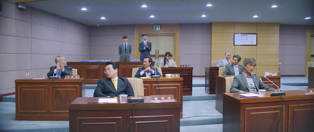 其他剧情线也是通过男女主携手政治政界不良作风,不过内容又偏向轻松喜剧风格,以戏剧化的手法表现韩国人的民主政治,又现实又荒诞,也充满了讽刺意味。