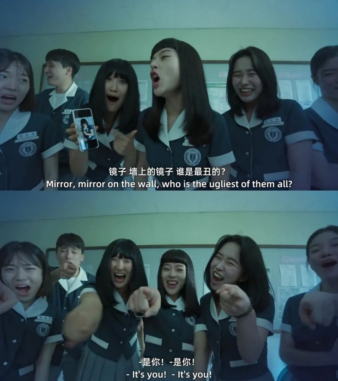 女主被女二踩倒,只有班长吼了一声,所有人都在看笑话,那种无助,感同身受,是全剧我唯一落泪的地方。被霸凌者对霸凌者就是有那种发自内心的害怕,不是能力体力地位的问题,就是害怕,动不了。第二就是真诚走过去点开视频和女主隔着人群对话那里,虽然已经猜到了,还是很感动。