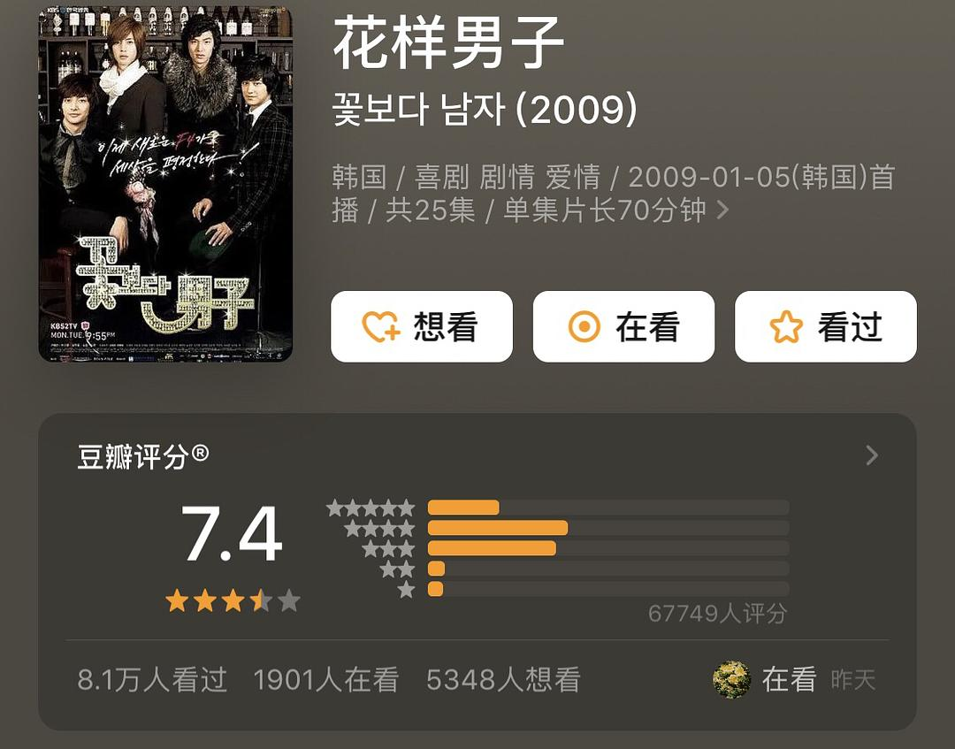 日版最符合原著,铺垫了道明寺的家庭问题,不是不可理喻的霸道,贵气有深情有可爱有,颜值嘛一开始觉得逊看久了真的越看越帅;韩版李敏镐本人很帅,但是发型真的太浮夸,他的颜值巅峰应该是金叹,霸气不足,演出了可爱的一面;台版里道明寺把霸道和没文化的反差表现的很好,就是颜值不如花泽类,楼梯追杉菜强吻撕衣服那一段真的童年阴影;泰版颜值我还是能get的,但是演技时好时坏,偶尔不合时宜的蜜汁微笑,不够霸气;王鹤棣和张翰相比,王至少还有颜值。。。