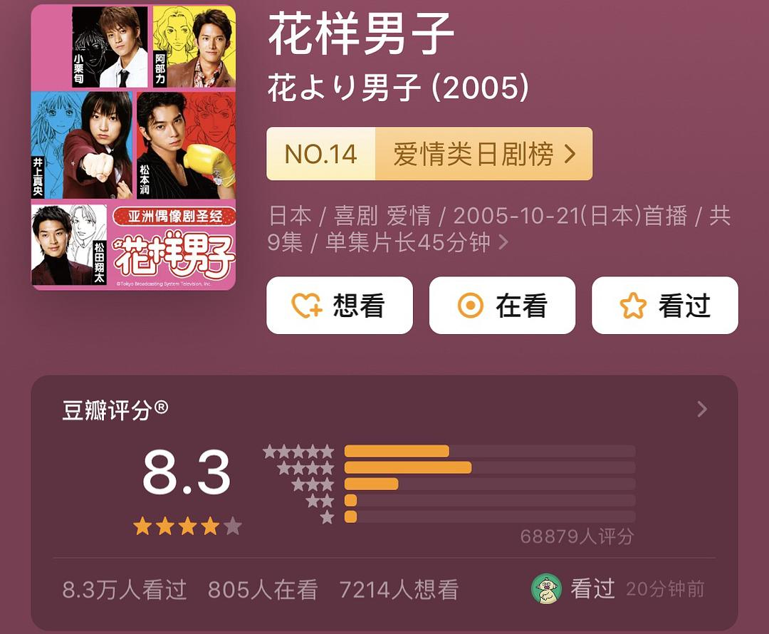 内地版:最尴尬最亲民,可能是为了过审,这版弱化了贫富差距和校园暴力的设定,道明寺给杉菜送金币这种剧情瞬间把道明寺从可望而不可即的富二代设定拉低为身边的普信男。还有剧中随处可见的植入广告,全是亲民品牌,令人尴尬。f4颜值尚可,演技一般,女主又实在拉胯,为本剧贡献了多个吐槽热搜,成功解锁该系列各版本最低分