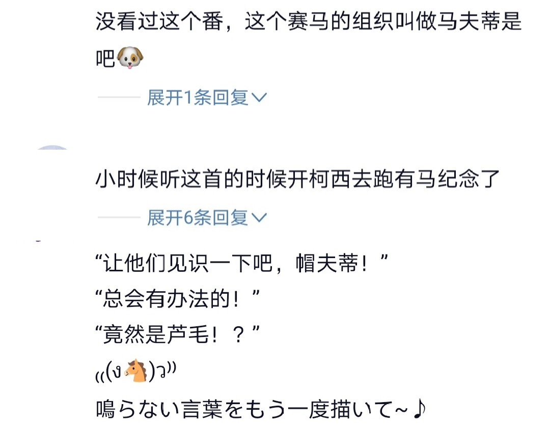 作为同期四月新番的作品《机动战士高达:GQuuuuuuX》也有着极高的讨论度,而《赛马娘:芦毛灰姑娘》的片头曲刚好就是为《机动战士高达:闪光的哈萨维》演唱主题曲《閃光》的[Alexandros]乐队。《超える》和《閃光》那极为相似的旋律实在让人忍不住联想。
