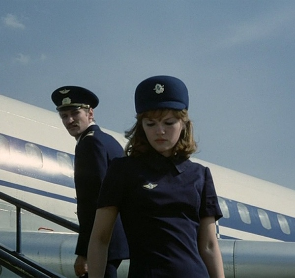 因为这个主题,我特别喜欢片中的小空姐维卡和小空哥安德烈。前半段的乘务组日常中,安德烈明显对维卡有好感,奈何姑娘的心思不在他身上,整天就想勾搭新来的实习飞行员,也就是男主。看到这里也许会觉得这个小空姐有点轻浮有点势利,气场弱弱的安德烈眼看着就要成苦逼炮灰了,而且他的职务还一度被直男癌的男主“嘲笑”了几回。