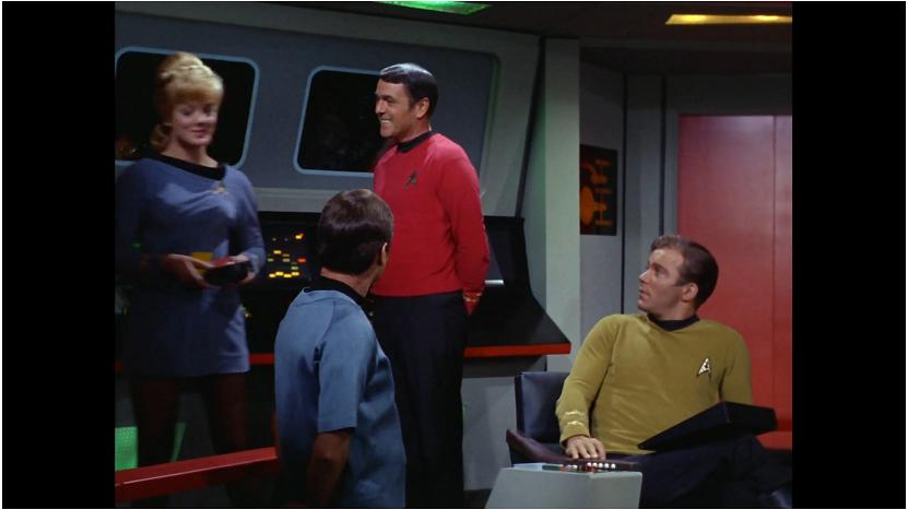 我发现我喜欢打仗的斗智的ST剧集,口味不那么女生。这集喜欢,来了一个舰桥指挥权争夺战。大副舰长和舰桥其他船员的性格固然很有得发挥,蛮横的Decker舰长更是个有趣的人物,他绝对不是坏人,而是个心理严重受创的不想活了的人。其实如果Kirk舰长处在他的境地,表现绝对是有过之而无不及。