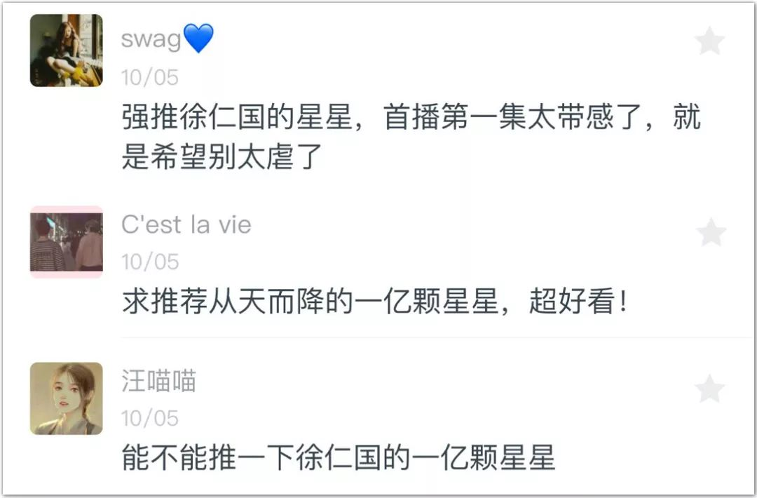 这下好了,到了《一亿颗星星》本来不知道但是最后却是亲兄妹的设定,观众接受不了了。我在微博上发过推荐的博文,就有留言说:这不是骨科吗……韩国那边也出现了:兄妹恋啊~毁三观啊~之类的评论。