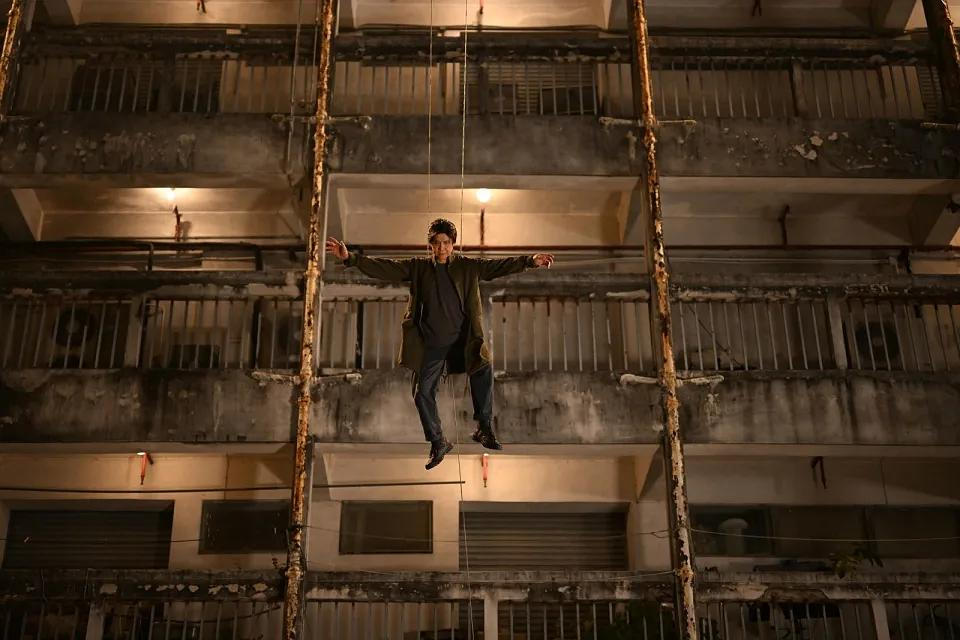 剧作之外技法也很匮乏,开头做旧——胶片抖动、划痕脏点、旧式字体,搭配《警察故事》合成器配乐,还觉得有点意思,哪知就是唯一的高光了。刘俊谦那个获得同行认可的楼梯摔戏居然只给两个镜头,还没前面复古戏的动作场面给的机位多,剪辑不会骂街吗?轻飘飘软绵绵显得刘俊谦获得认可也不可信。文戏里人的情绪和反应完全没有镜头揭示,音效也加不到,忽然和好了忽然吵起来,角色就是工具人。